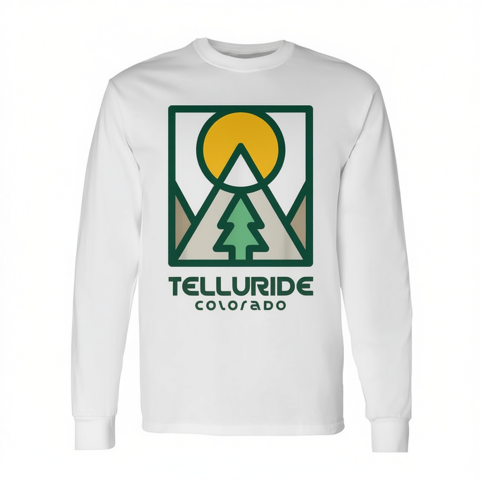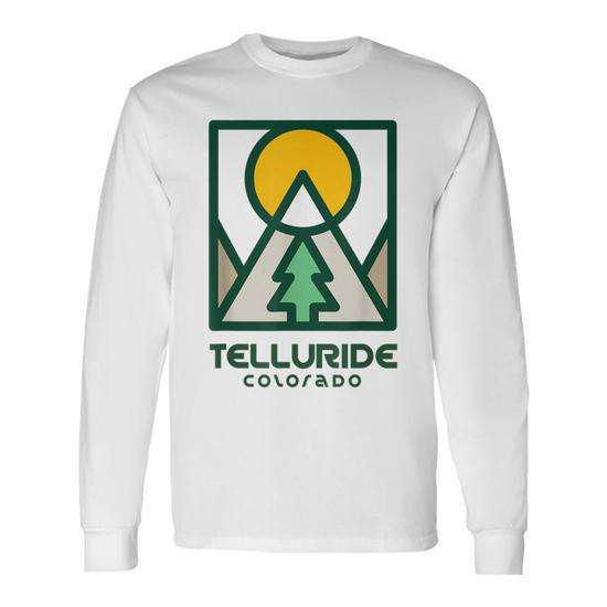 T-shirt a maniche lunghe Telluride Colorado con montagne di Telluride Colorado, idea regalo promozionale