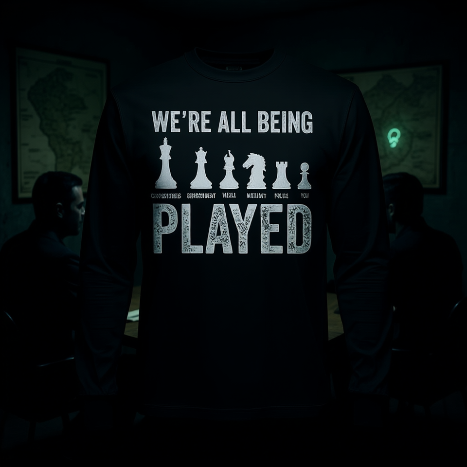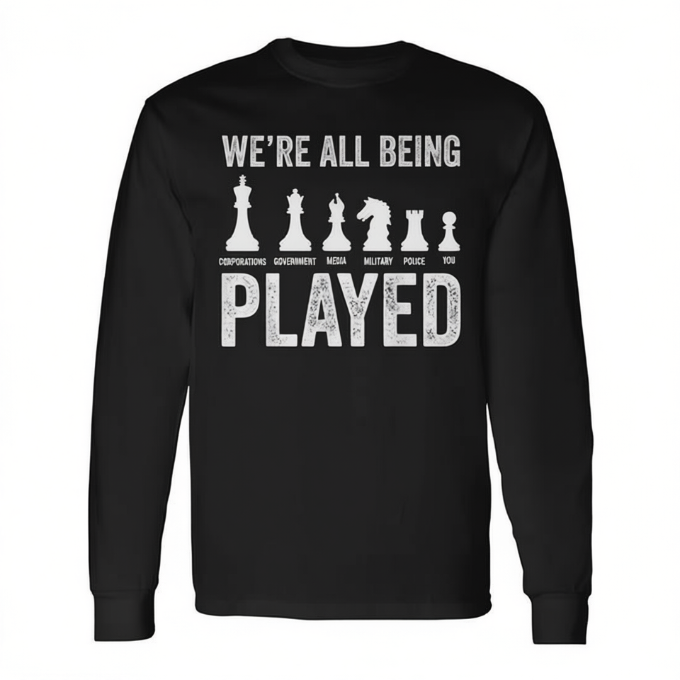 T-shirt a maniche lunghe con teoria della conspirazione 'We're All Being Played' - Prodotto promozionale