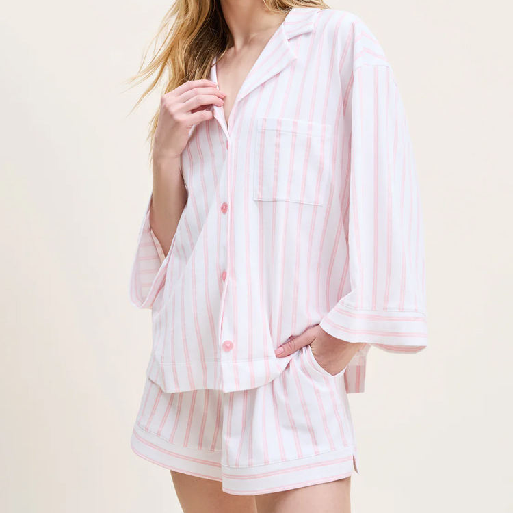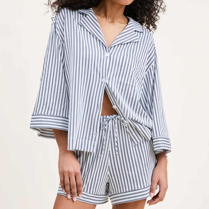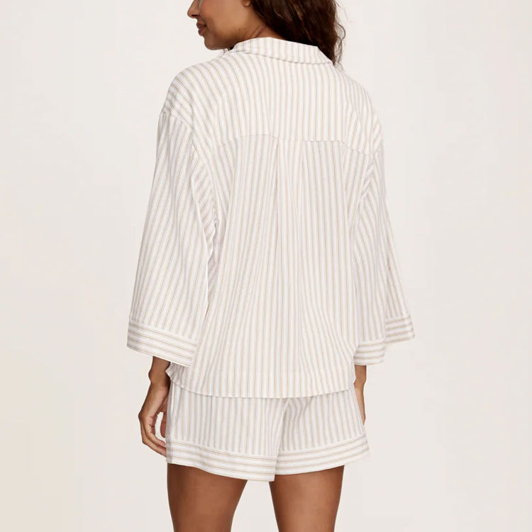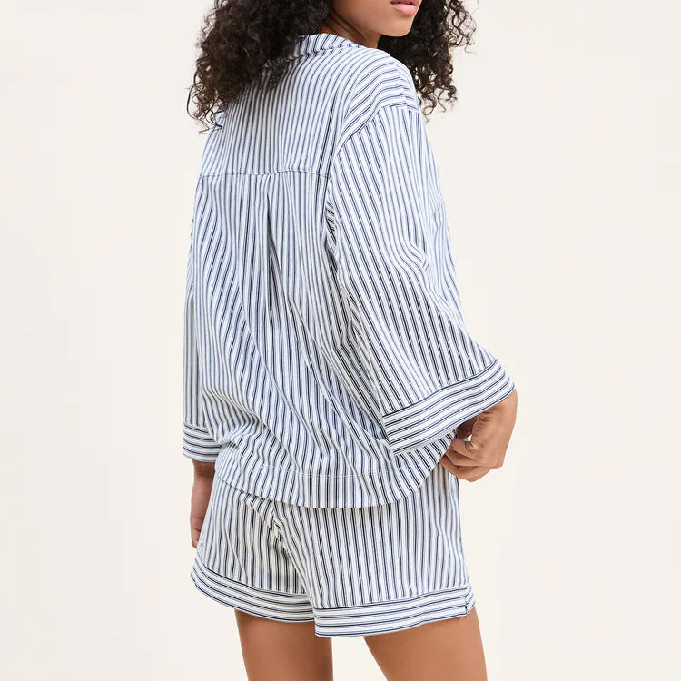 Pigiama da Donna a Maniche Lunghe, Set Due Pezzi a Righe, Pantaloncini in Cotone Pima, Set Pigiama Sostenibile per Donna