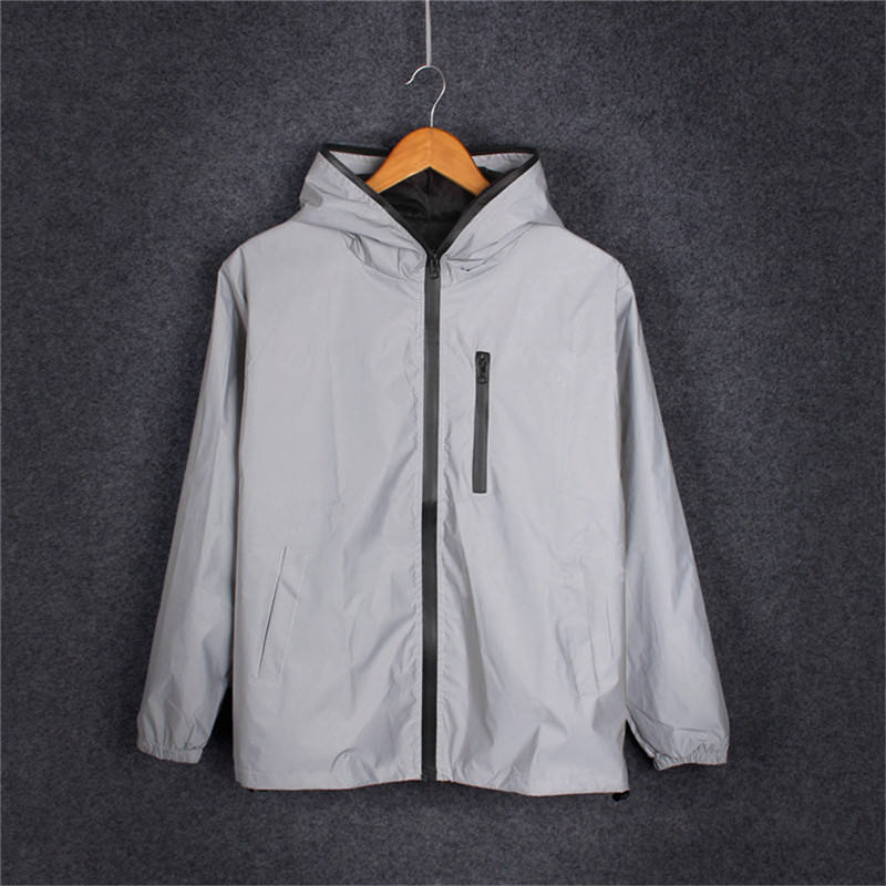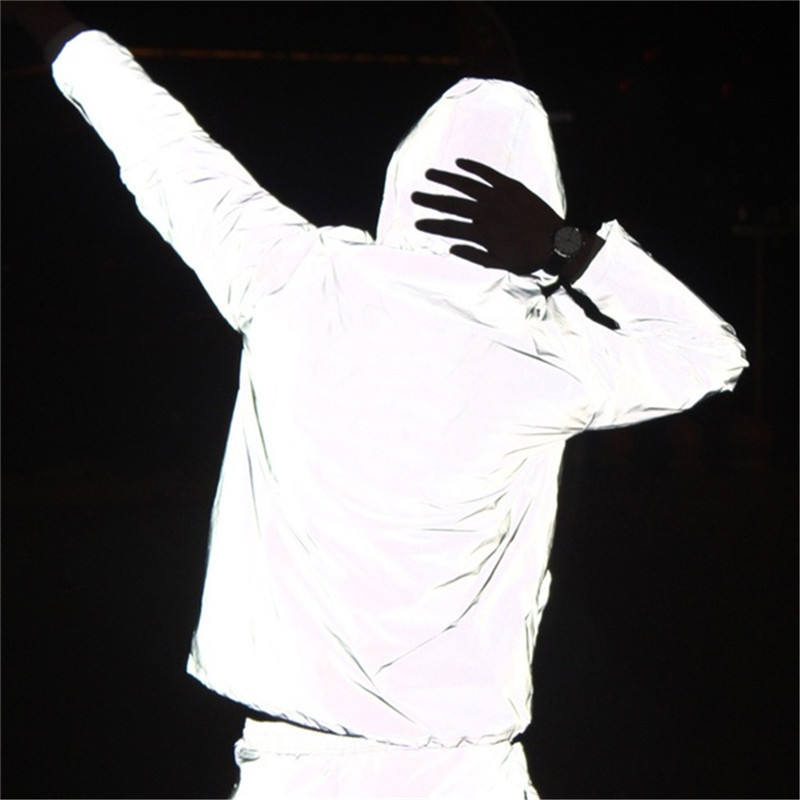 Long Sleeved Reflective Jacket Men / Women Harajuku Windbreaker Jackets Hooded Hip-hop Streetwear Night Shiny Coats L0282-1