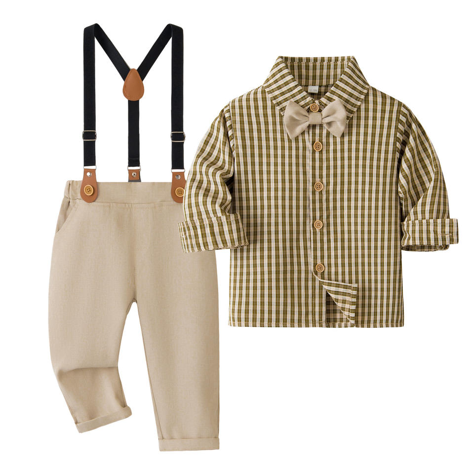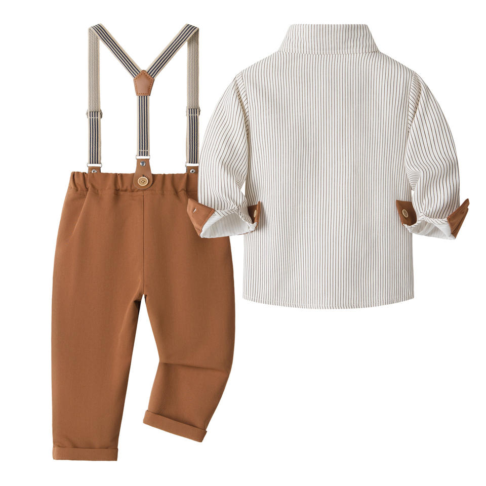 Nuovo Arrivo: Set Camicia a Righe a Maniche Lunghe e Pantaloni con Bretelle per Bambini, Completo Formale per Bambino, Fornitura ODM OEM
