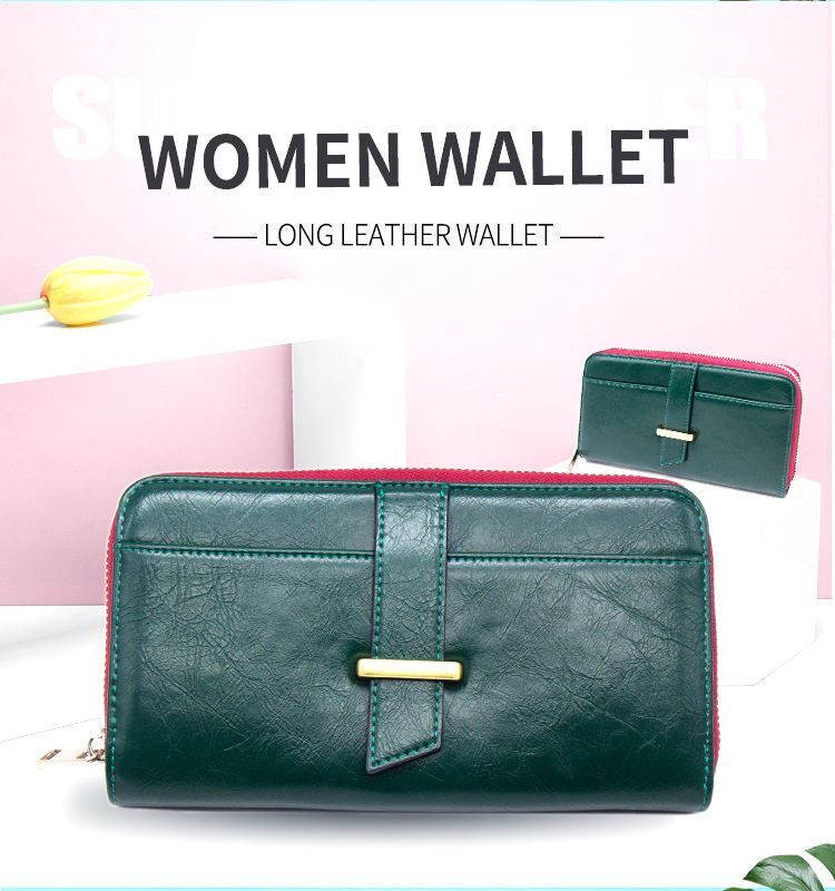 Long Style Customized Women Wallet Green New Color RFID Blocking Zipper Wallet for Women