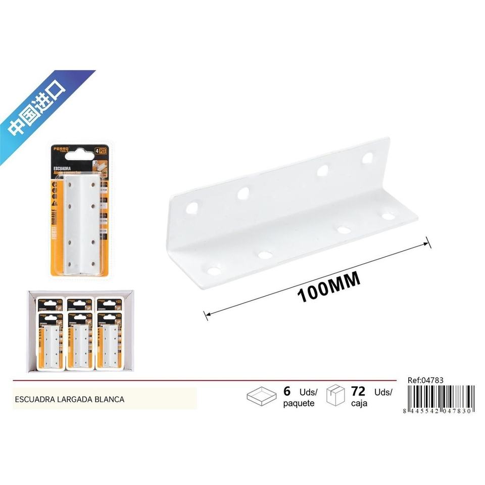 Long white bracket 2.0 mm 100x25x25 mm 4 pcs - Hardware