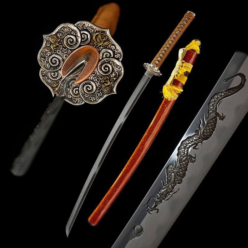 Longquan Sword and Knife Uzi Steel Dragon Pattern Sabers 103CM Covered with Earth Burned Blades High-end Men Gift Samurai Sword