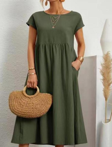 Loose Cotton Linen Sleeveless Dress with Pocket in Pure Color for Women Comfortable Breathable Summer Dresses Fashionable