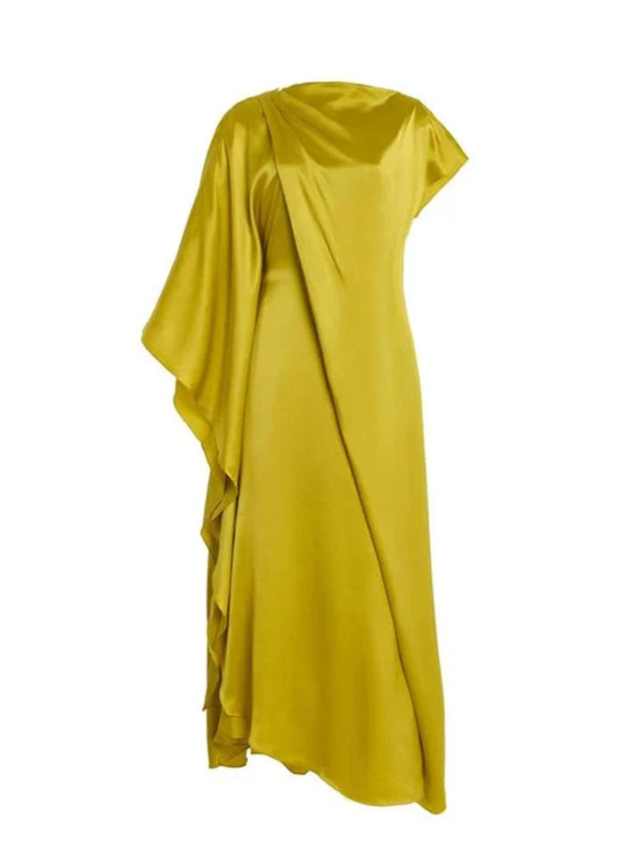 Loose Yellow Elegant Dress Autumn New Asymmetrical Slim Long Evening Dress