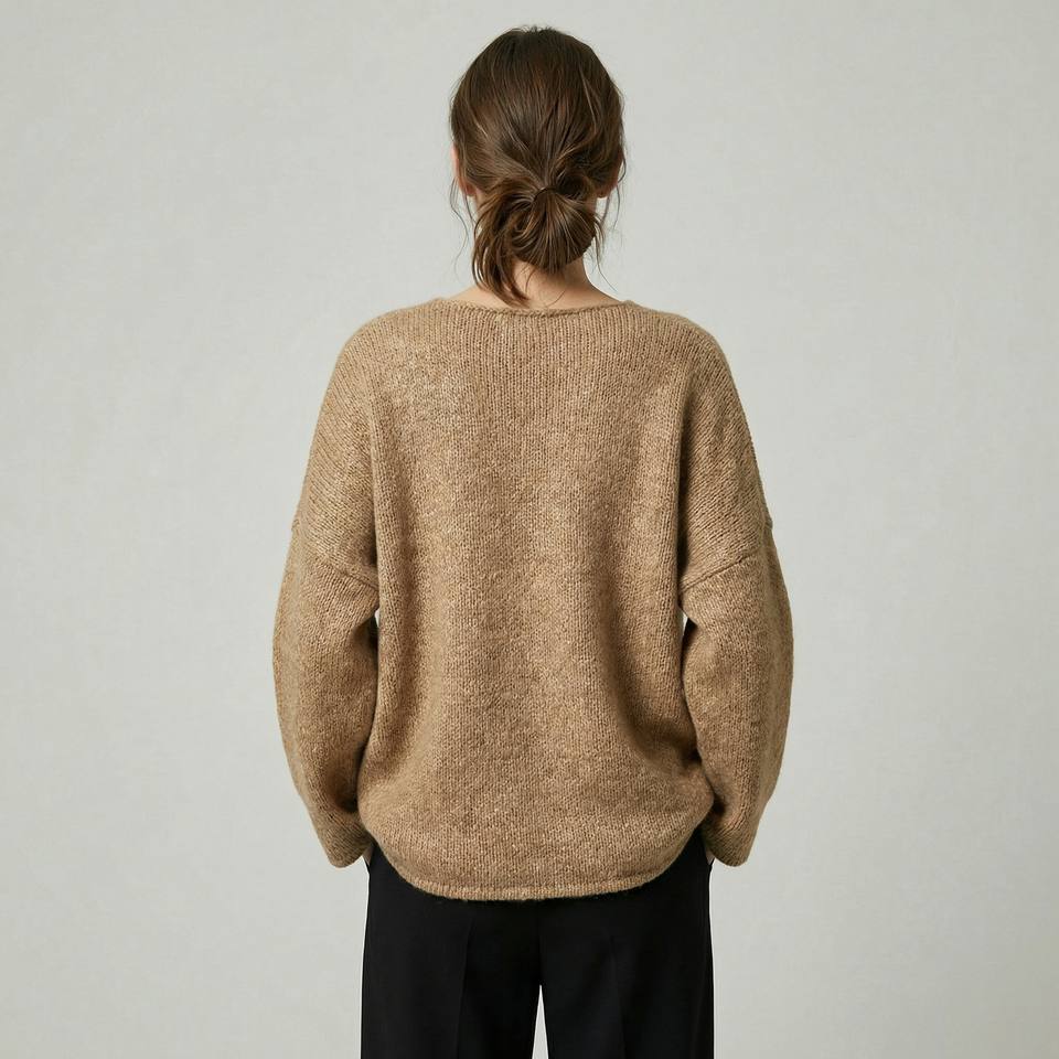 Loose-knit V-neck Winter Sweater with Gathered Neckline 18% Wool Bohemian Style Breathable