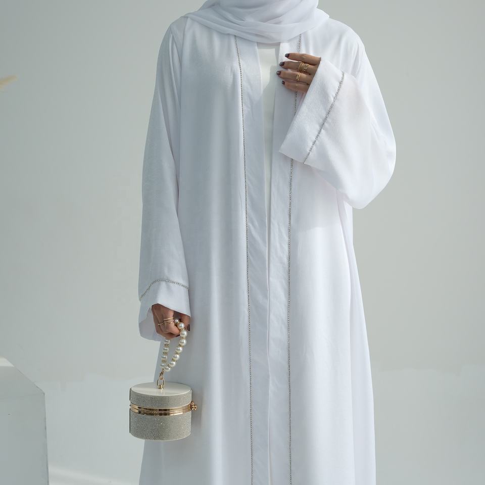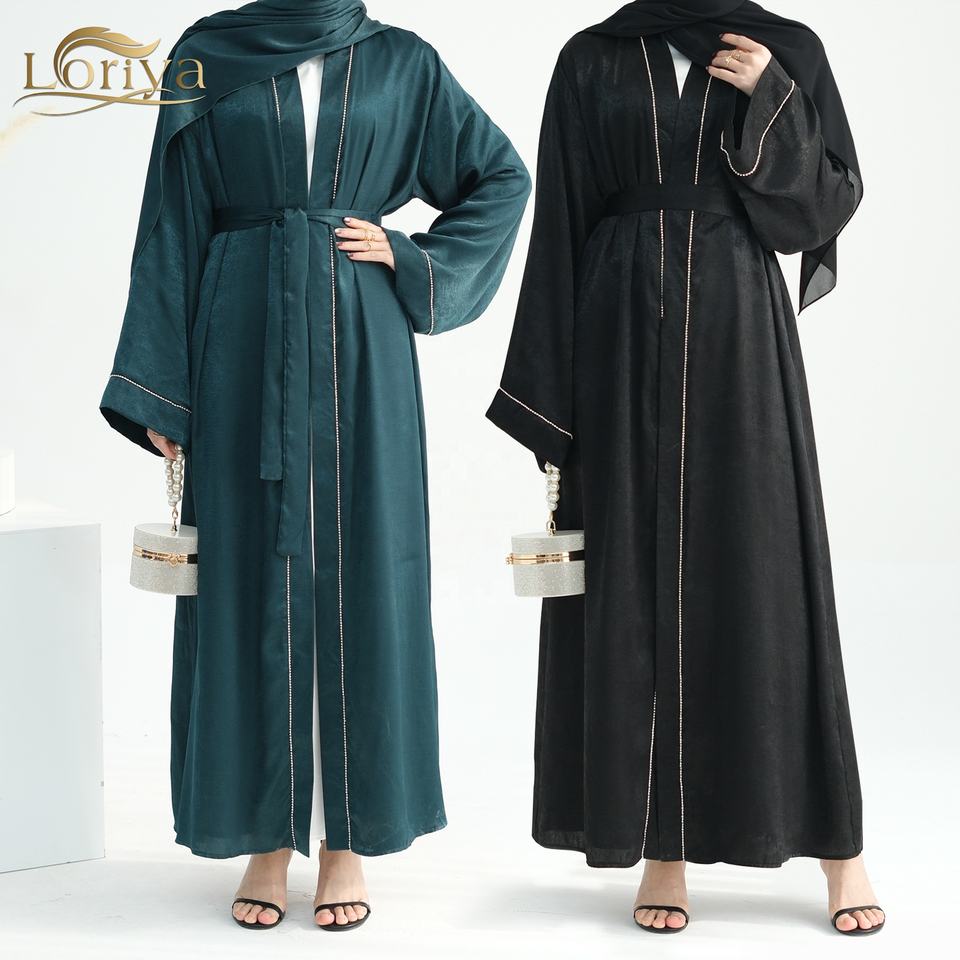 Loriya tinta unita turchia modesto Dubai Abaya lusso Kimono Abaya abito musulmano donna piccolo diamante Abaya abbigliamento islamico