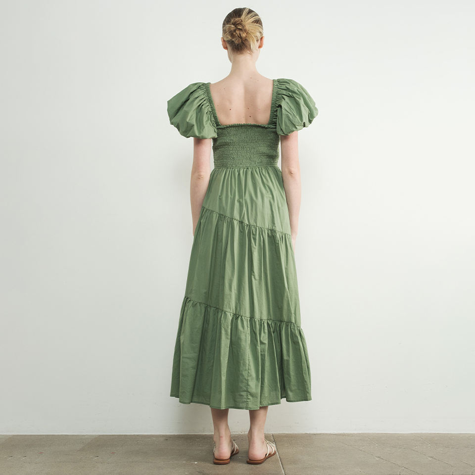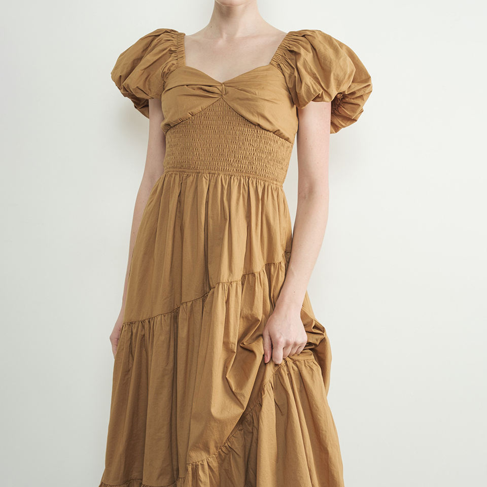 Los Angeles Wholesale Boutique 3 Tiered Multiple Pink Color Custom Producing Waist Smocked Puff Sleeve Dress for Women