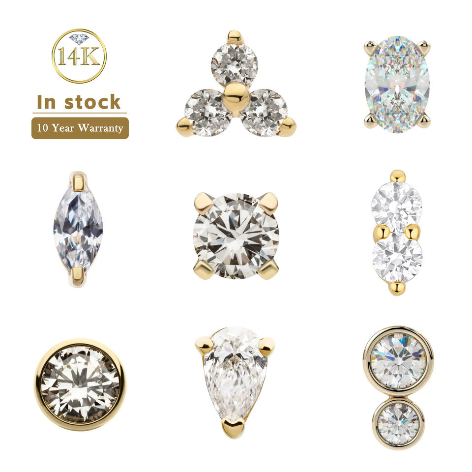 Lotus Wholesale Gioielli Raffinati in Oro Giallo Massiccio 14k 18k con Moissanite Lucida, Terminali Senza Filettatura per Piercing Orecchio e Corpo