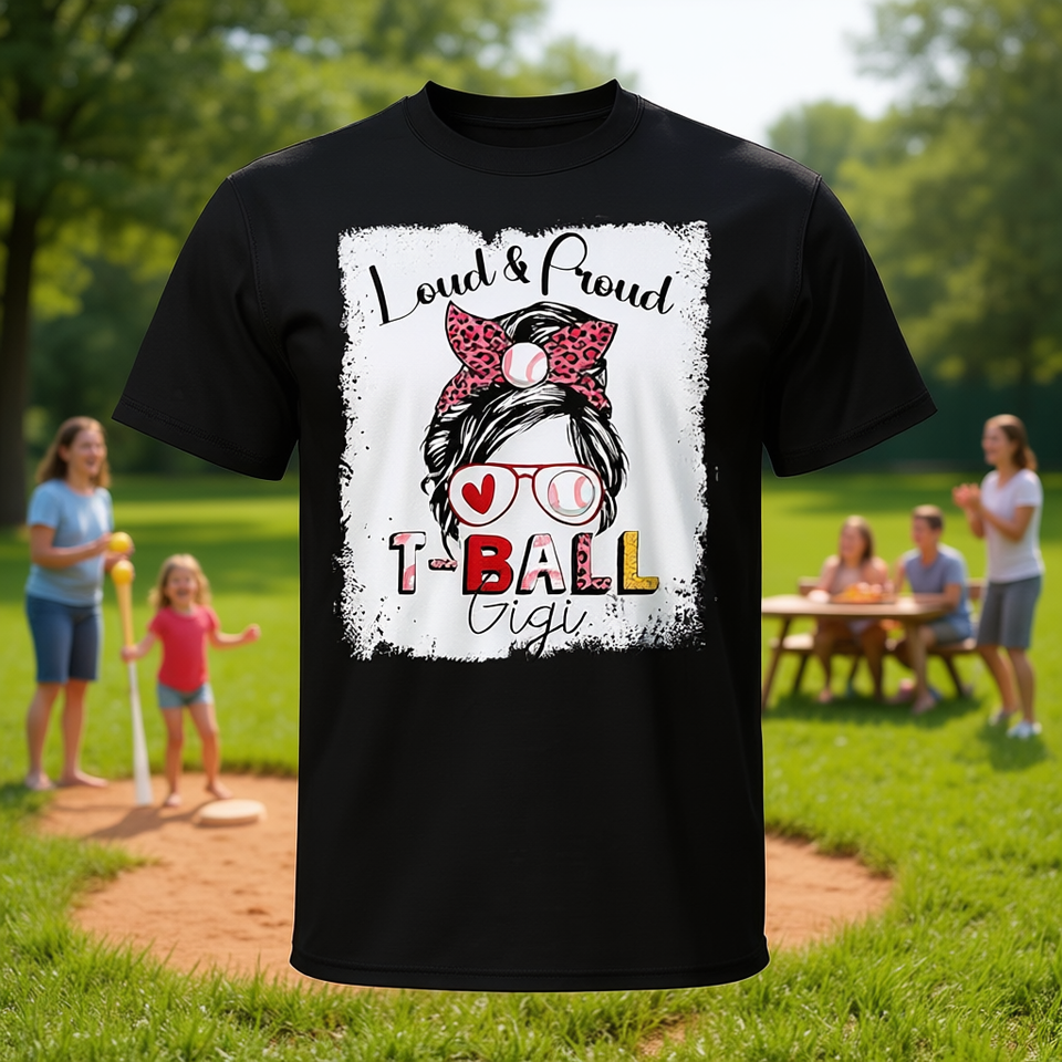 Maglietta Loud And Proud Gigi Messy Bun T Ball per la squadra di cheerleading familiare