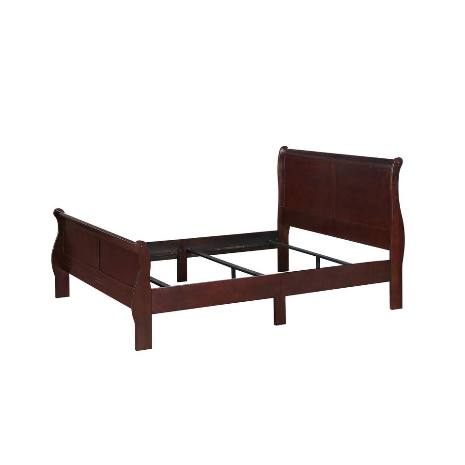 Letto a slitta King Size in legno massello con finitura marrone ciliegio Louis Philippe, mobili per camera da letto