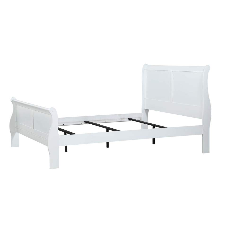 Letto a slitta con pannelli in legno massello stile Luigi Filippo, misura Queen, finitura bianca, mobili per camera da letto