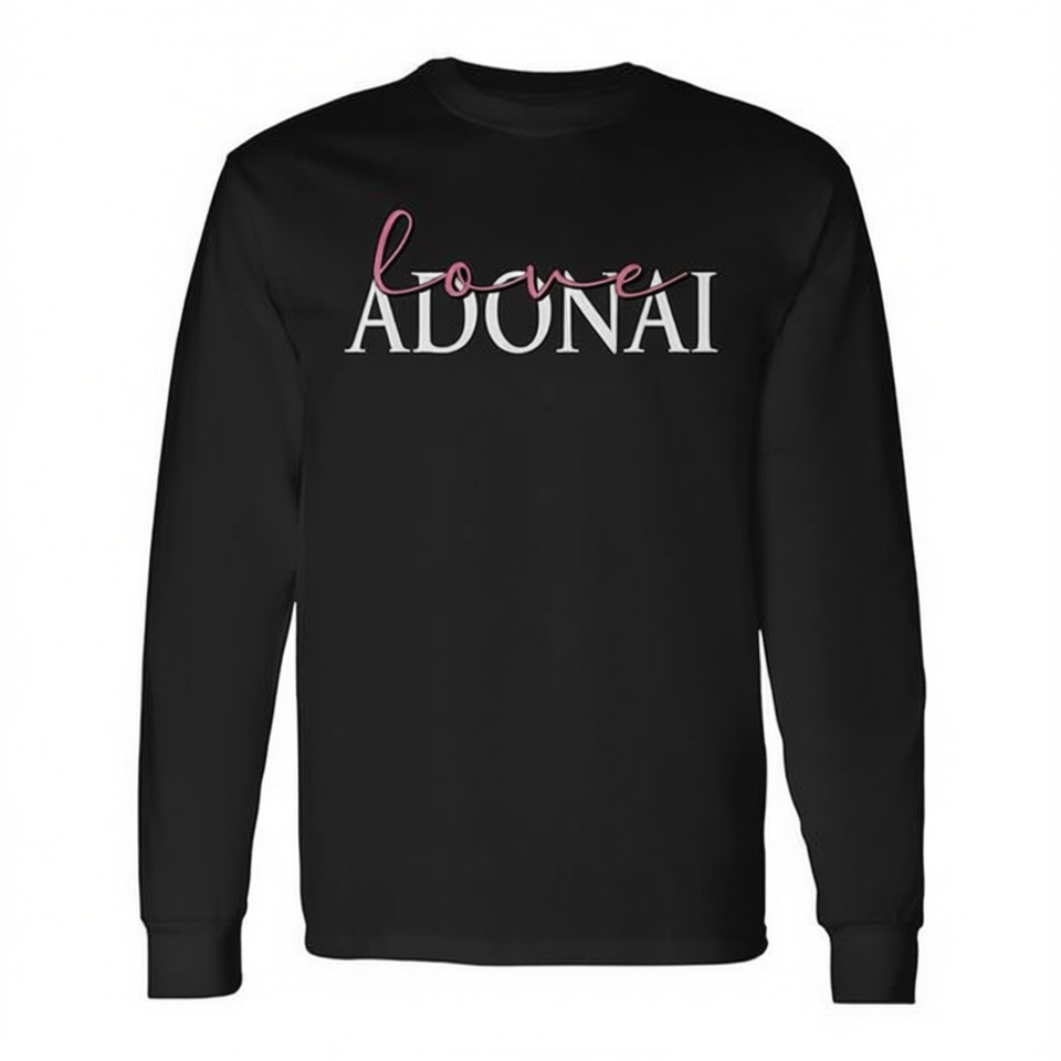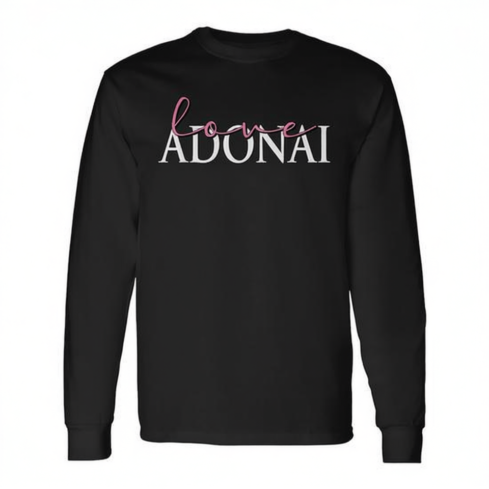 T-Shirt Religiosa a Maniche Lunghe 'Love Adonai' Unisex per Adulti con Stampa Digitale, Abbigliamento per la Fede in Chiesa