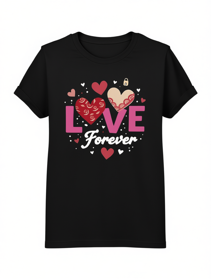 T-shirt con stampa Love Forever Rose Heart da donna, girocollo, manica corta, casual, per San Valentino, 100% cotone, lavabile in lavatrice