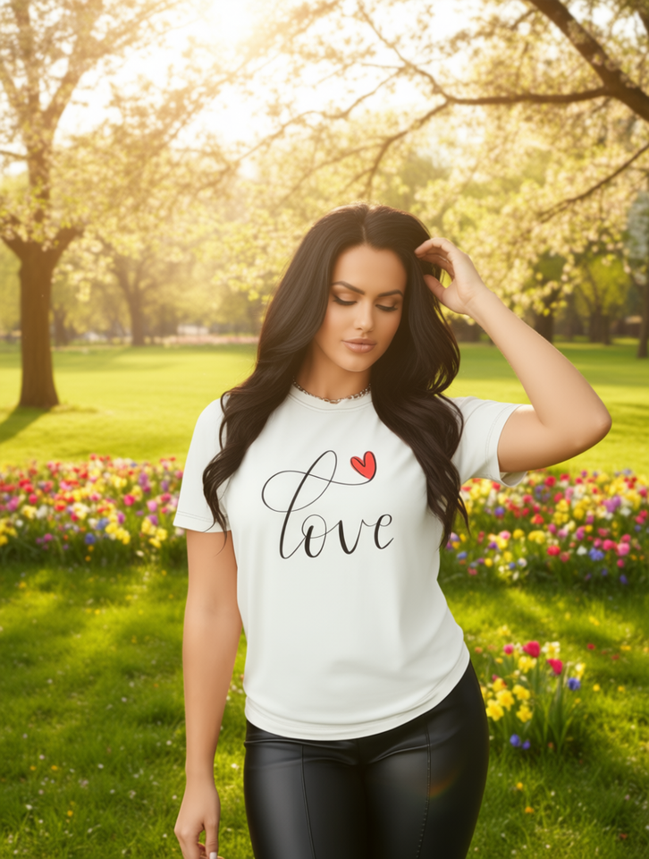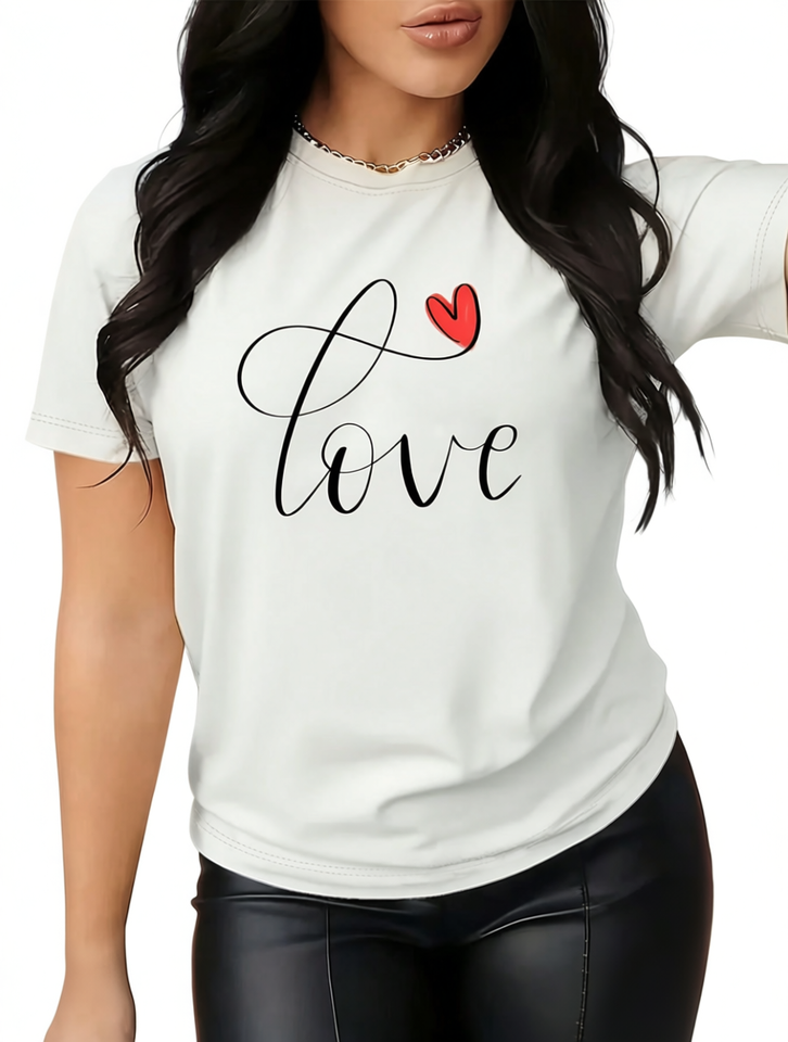Love Heart Print Women's Casual T-Shirt Short Sleeve Round Neck 100% Cotton Breathable Spring Summer Top