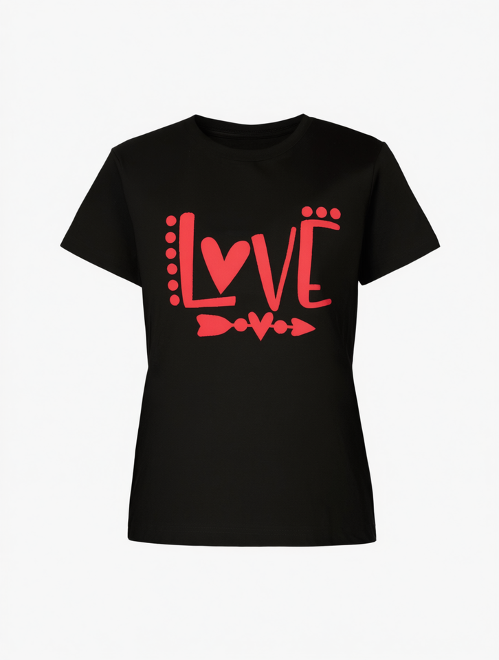 Love Pattern Women's T-Shirt Short Sleeve Round Neck Printed Casual Spring Wear 100% Cotton Jersey Comfortable Fit