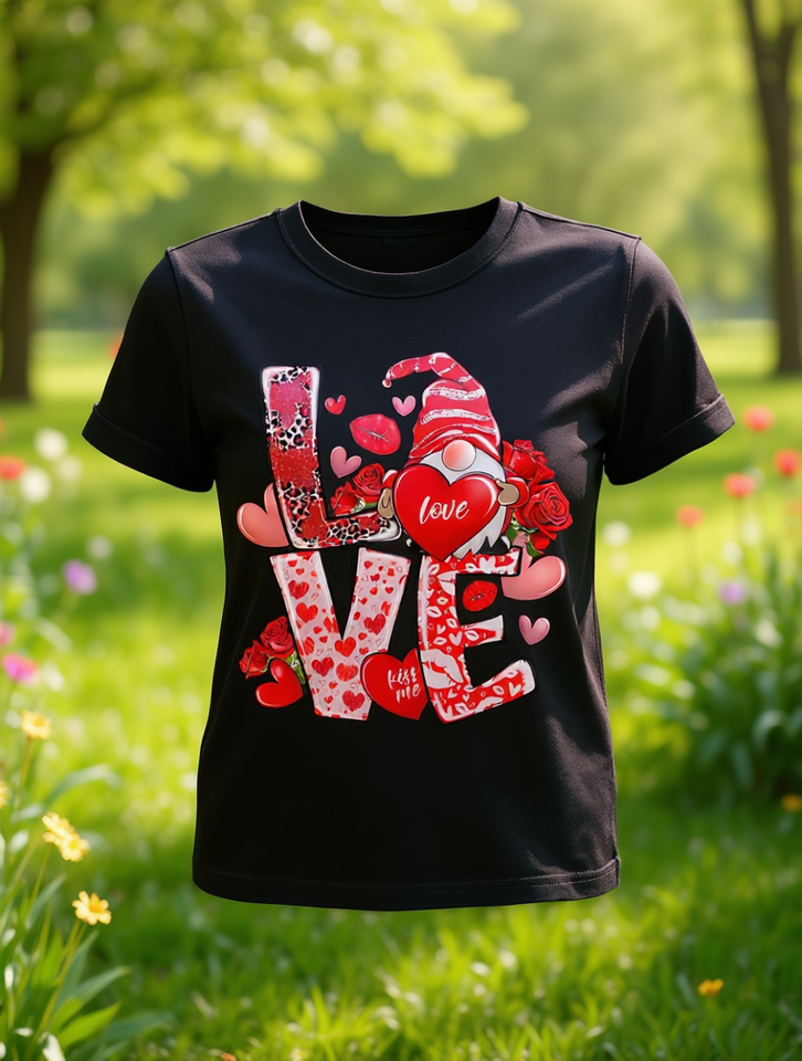 Love Printed Women's T-Shirt Short Sleeve Round Neck Pure Cotton Casual Valentine's Day Spring Summer Wear