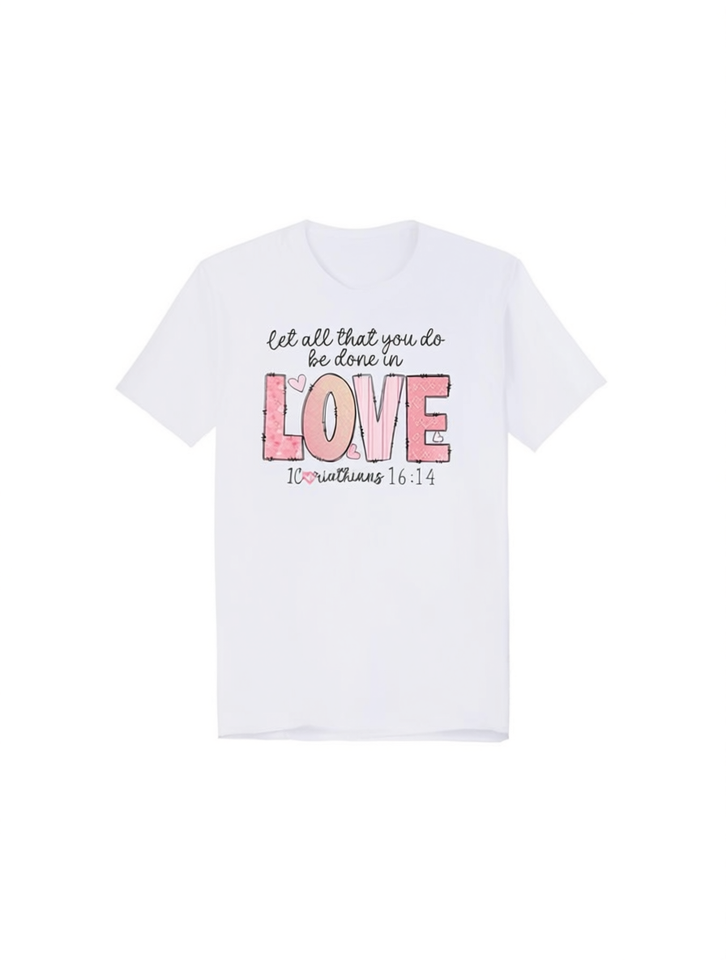 Love T-Shirt Women Crew Neck Regular Sleeve 100% Cotton Valentine Heart Print Casual Style All-season Jersey Fabric