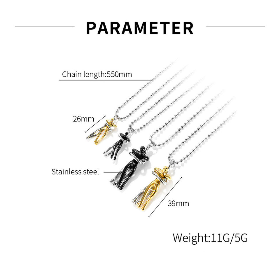 Love Women Men Titanium Steel Valentine's Day Jewelry Pair Pendant Lover Couple Hugs and Kisses Necklace Set for Couple