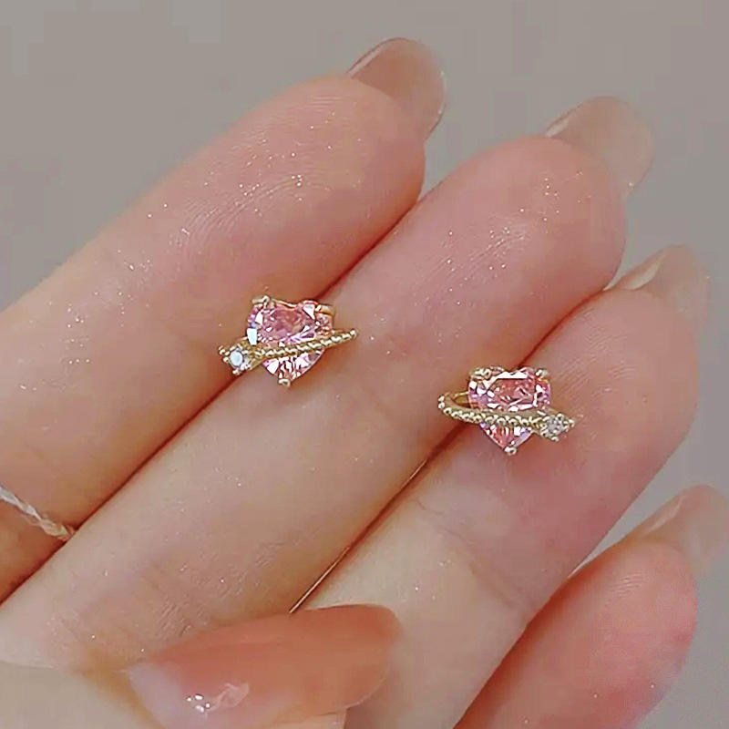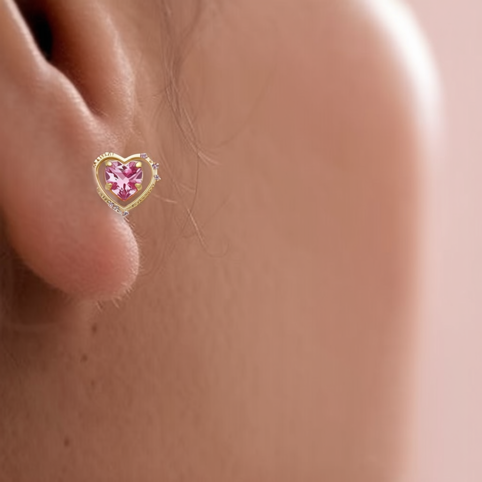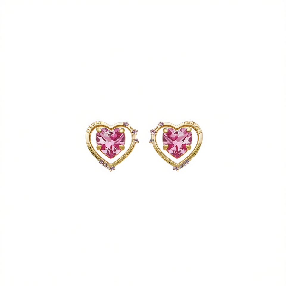 Love You Forever Heart Stud Earrings Pink Gemstone 18K Gold Plated Women's Fashion Jewelry Gift