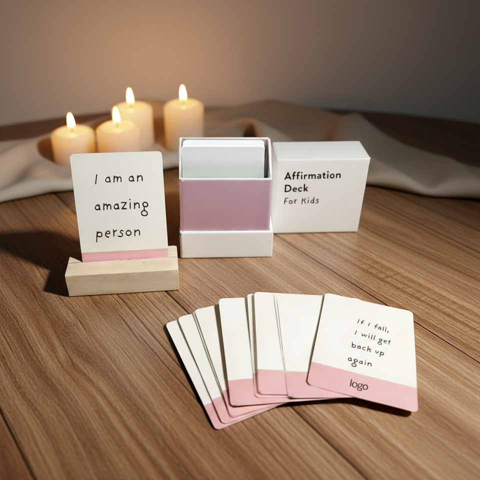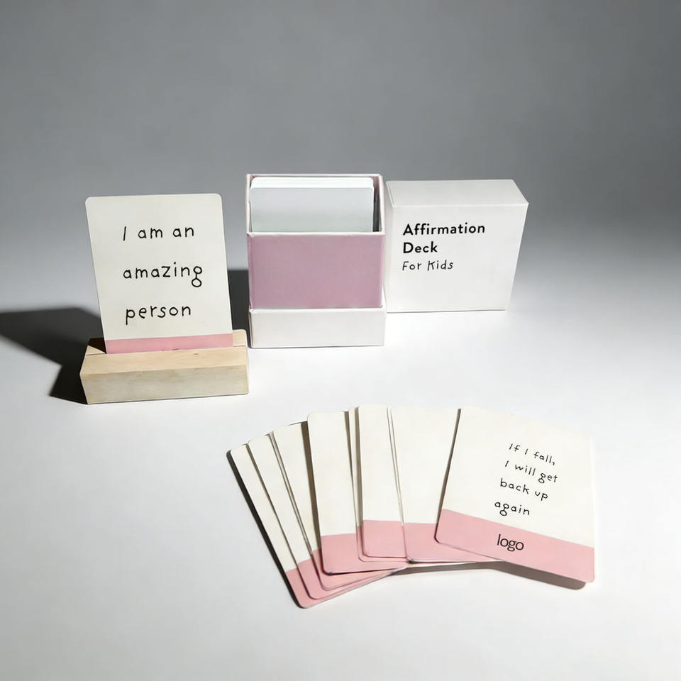 Set di Carte di Affermazione Positive per Bambini 'Amaci da Te' Stampa Personalizzata Rosa Citazioni Quotidiane di Mindfulness per Bambini