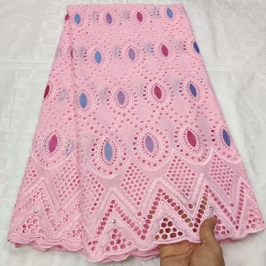 Lovely Baby pink swiss Lace 100% Cotton Dry Lace Wedding Lace Fabric With Stones
