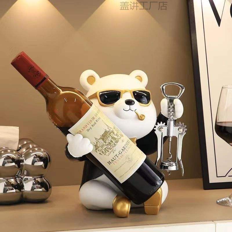 Lovely Elegant Cute Bear Resin Mold Figurine Hand-painted Wine Opener Holder-Luxury Home Bar Wine Rack Decor New Year