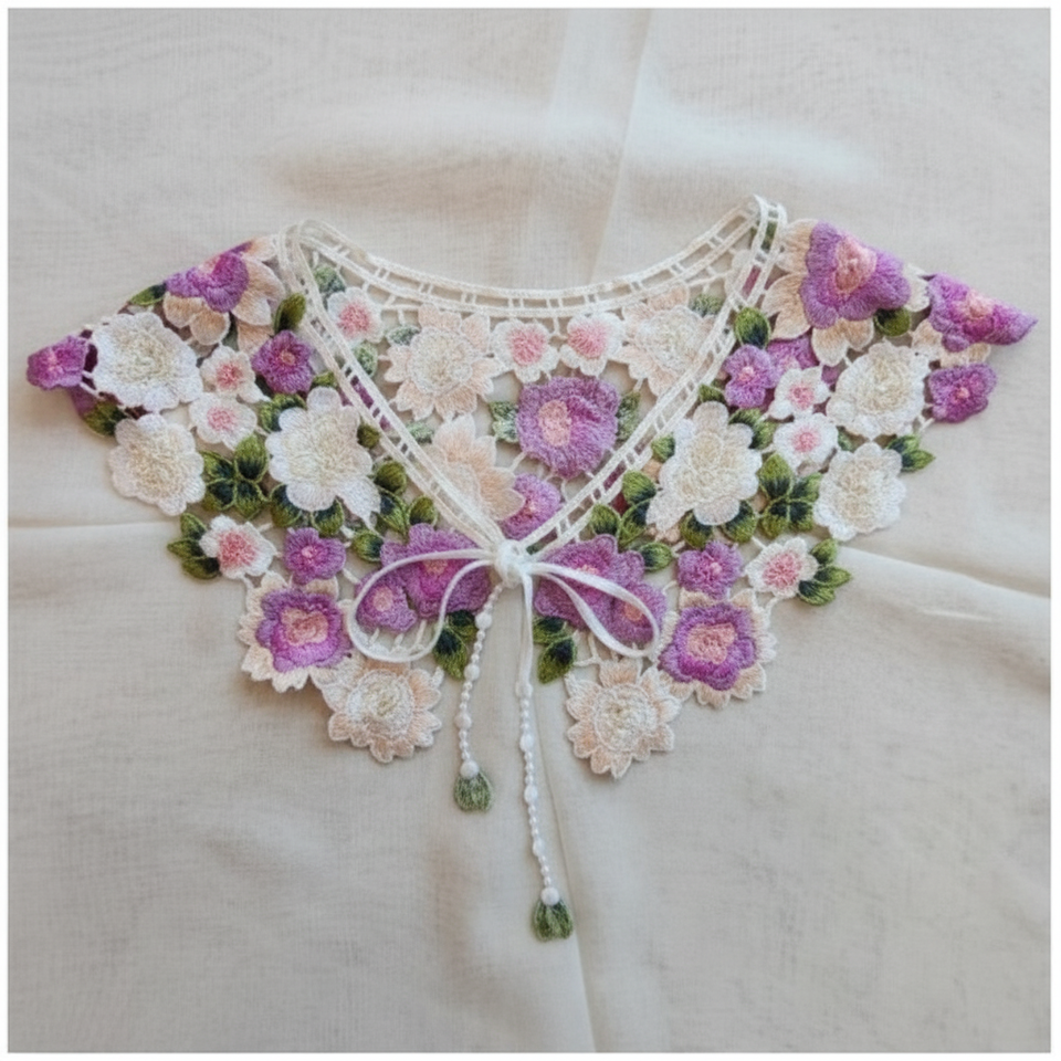 Lovely Flower Embroidered Knitted Cape Detachable Shawl with Layered Design