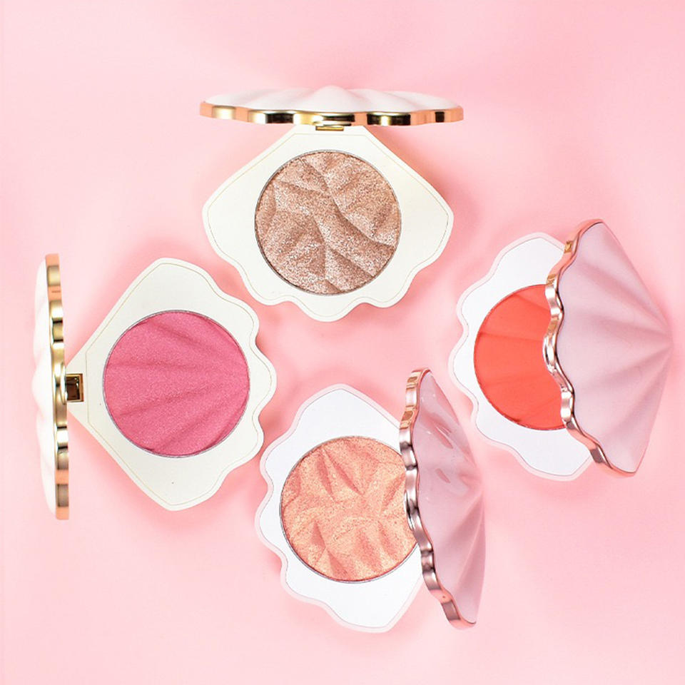 Bella custodia a conchiglia con Logo personalizzato di marca rosa rosso pigmento alto Bronzer per guance evidenziatore in polvere pressata fard Palette
