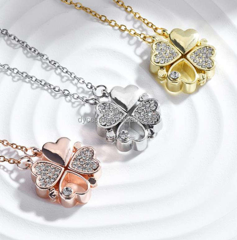 Lover Gift Jewelry Four Leaf Clover Crystal Magnet Necklace Heart 16 Styles Personality Gold Plated Love Necklace for Women