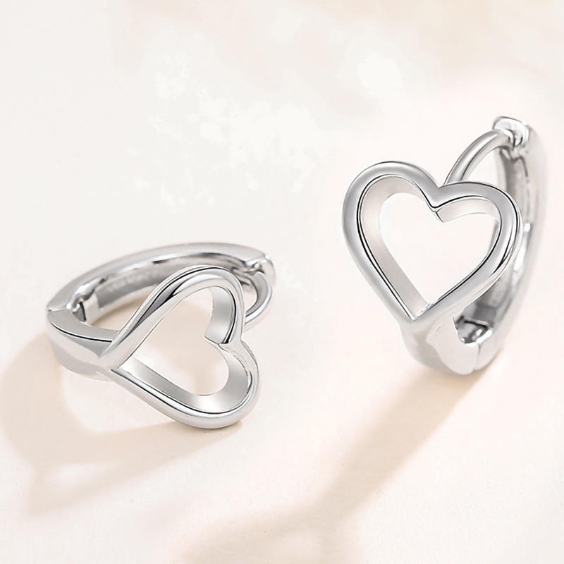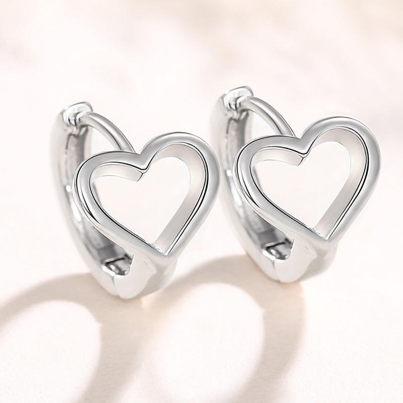 Loving Heart Huggie Earrings 925 Silver White Gold Unisex Everyday Wear Fine Jewelry