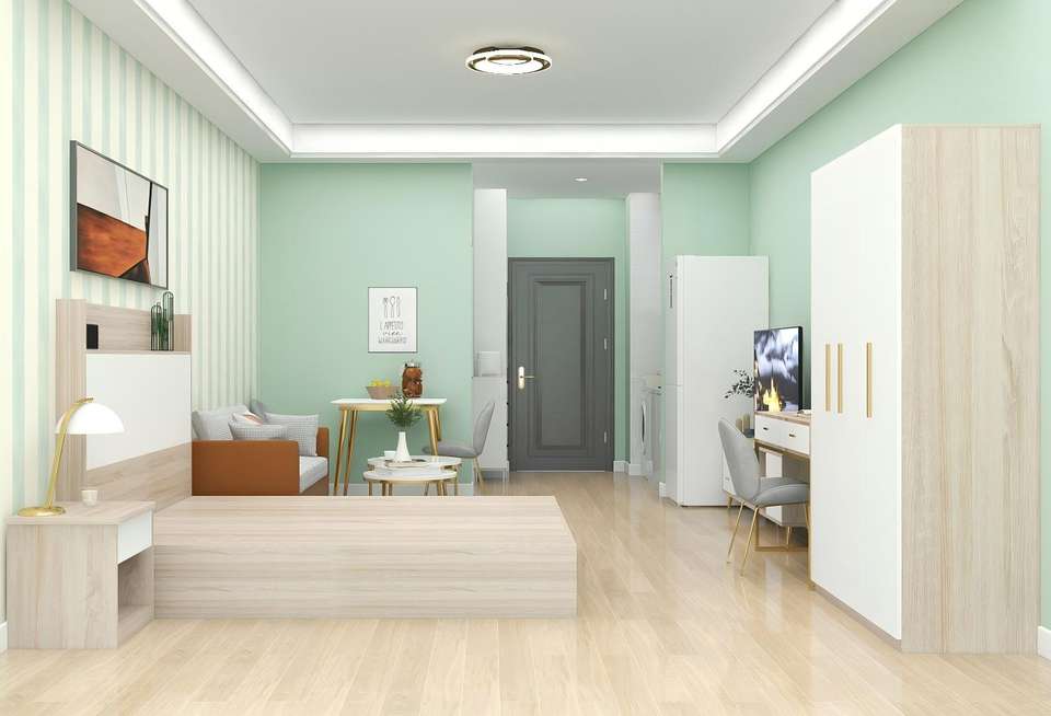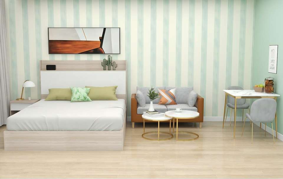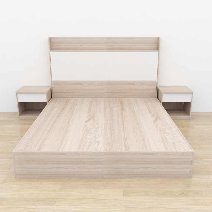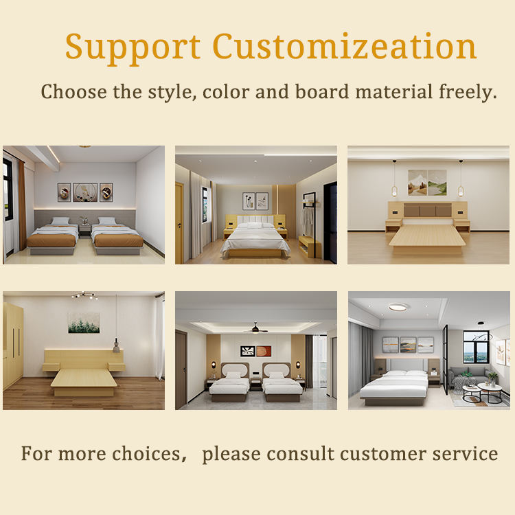 Set Letto in Legno Moderno ed Economico con Testiera, Ecologico e Resistente alle Macchie, per Camere d'Albergo e Appartamenti