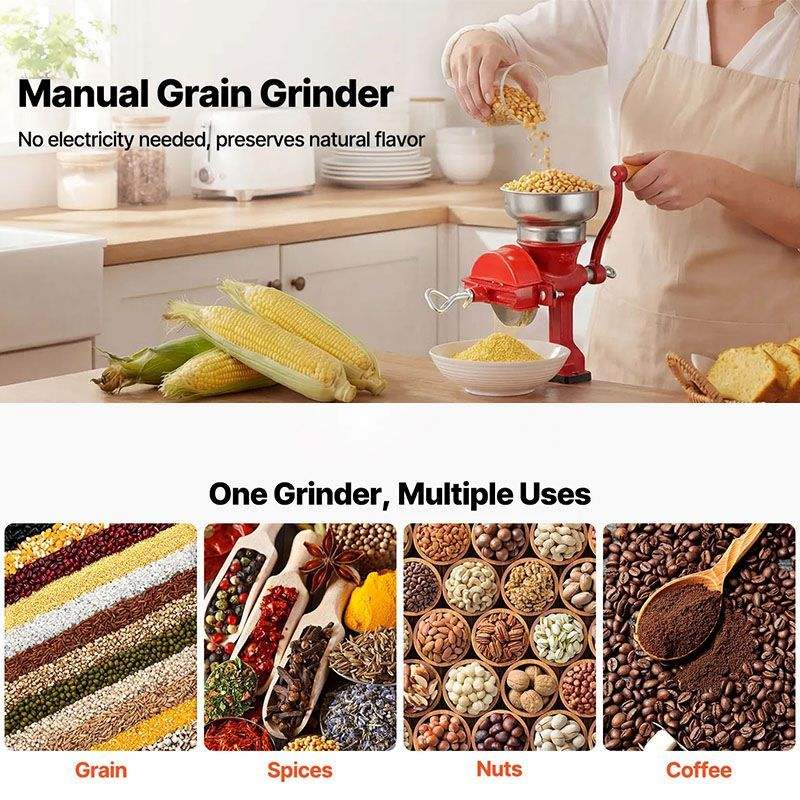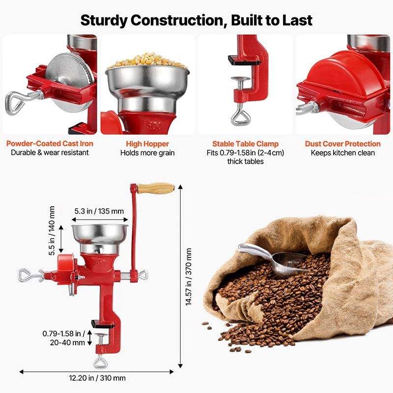 Macinacaffè Manuale Low Hopper per Cereali, Spezie, Chicchi di Caffè e Noci