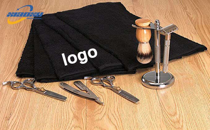 Nome del prodotto:Asciugamani neri per salone di bellezza, spa e parrucchiere con logo personalizzato stampato
