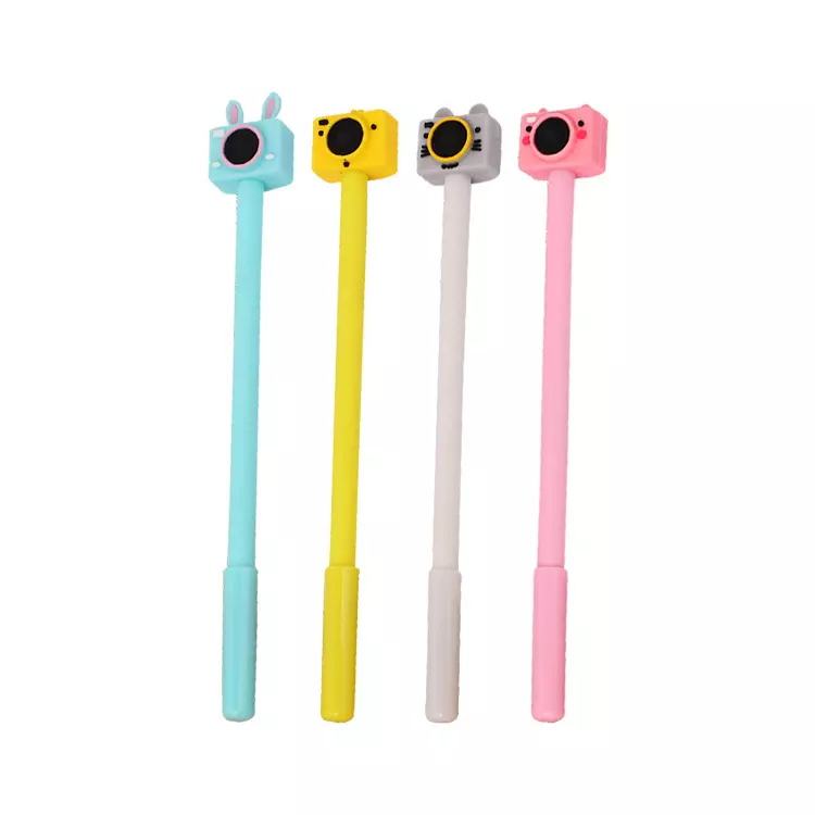 Low MOQ Custom Logo Cartoon Camera Stylus Gel Pen Plastic Unique Gel Ball Pen
