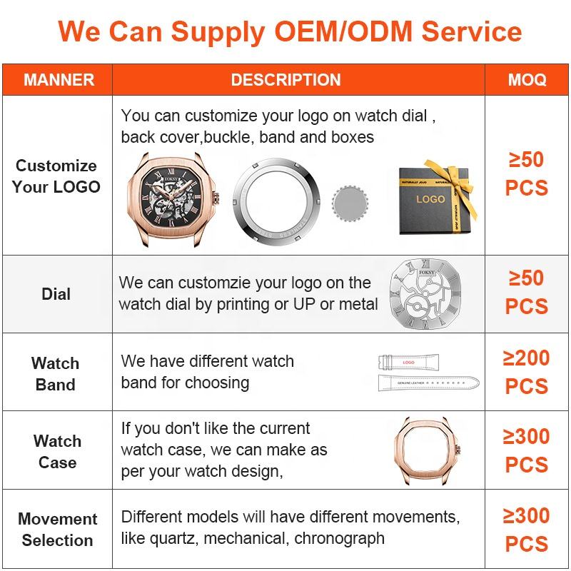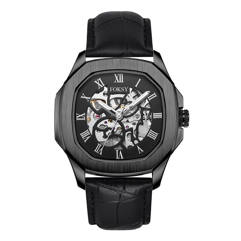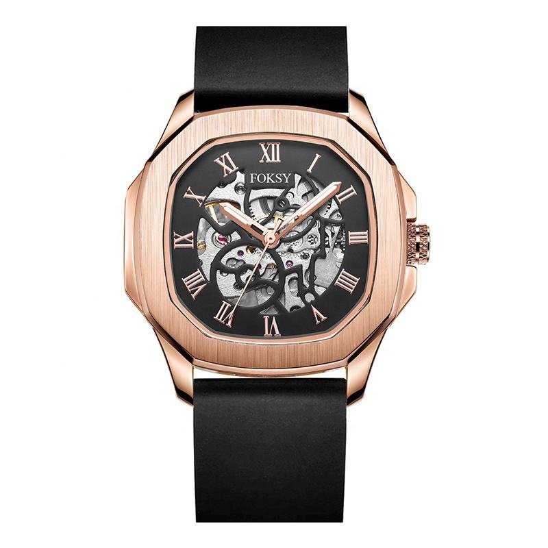 Basso MOQ personalizzato il tuo Logo uomo 42mm automatico scheletro orologio per gli uomini di marca oro rosa quadrato