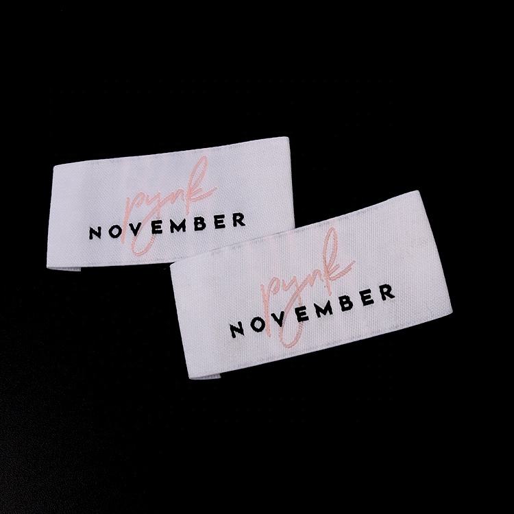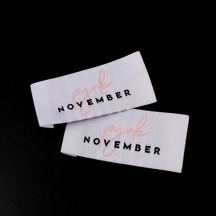 Nome del prodotto:Etichette posteriori tessute a mano di piccole dimensioni, personalizzate con il tuo logo rosa, per borse.