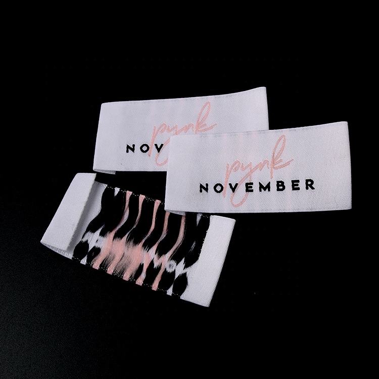 Etichette posteriori tessute a mano di piccole dimensioni, personalizzate con il tuo logo rosa, per borse.
