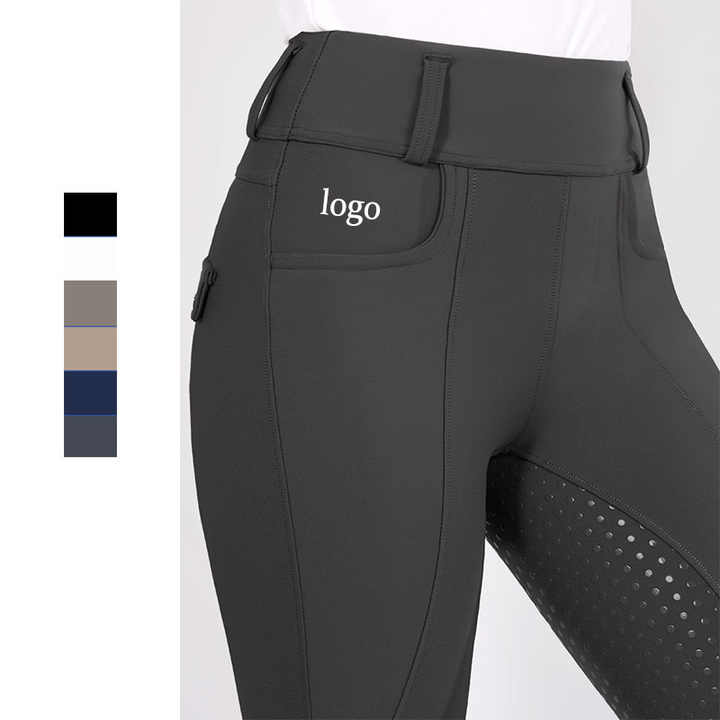 Low MOQ Women Black Horse Riding Breeches With Deep Pockets Equestrian Full Seat Silicone Legging Women 4 Way Stretch Jodhpurs