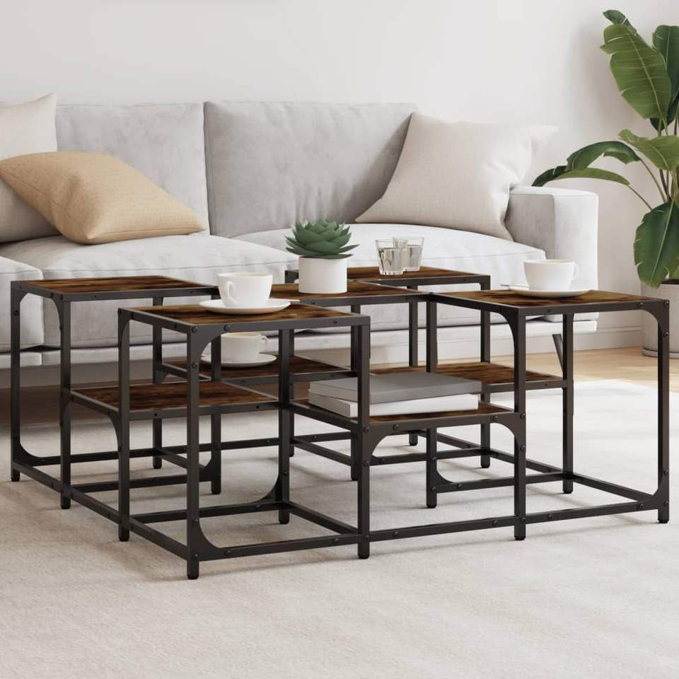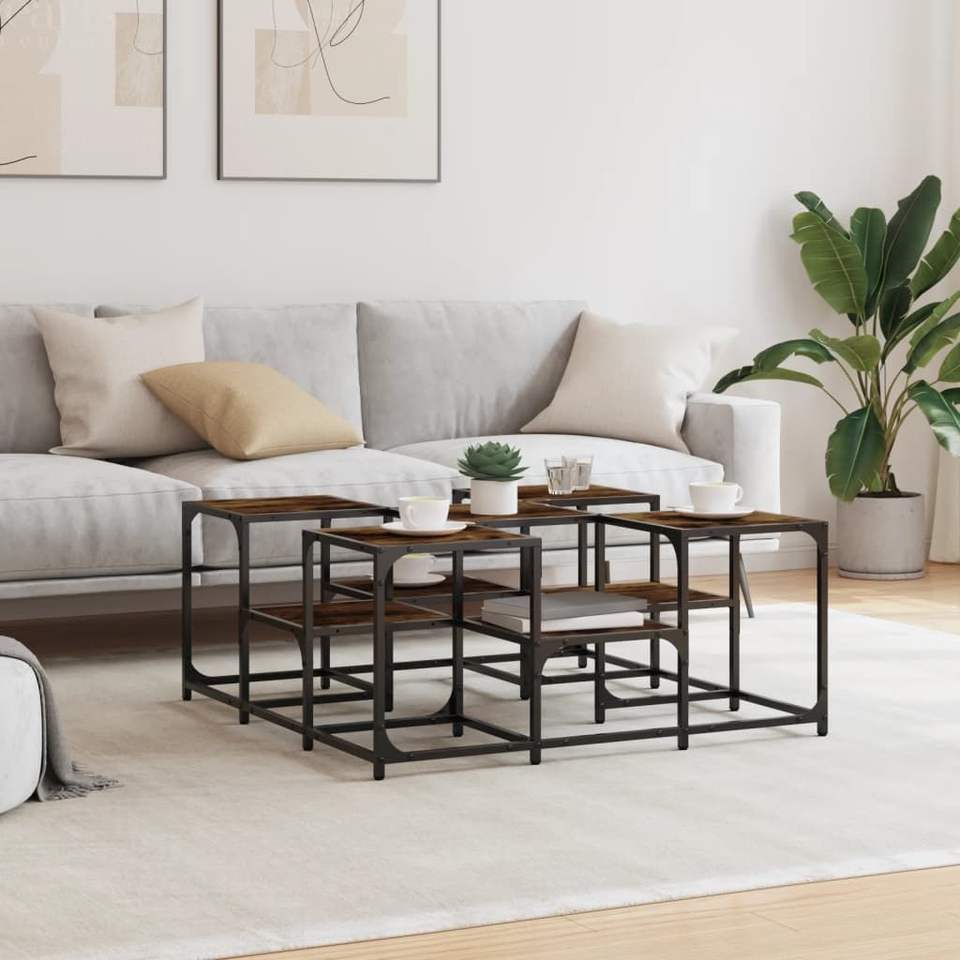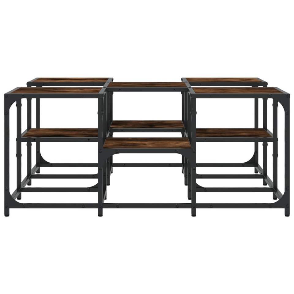 Tavolino da Caffè Basso in Metallo con Legno di Quercia Affumicata, Design Unico