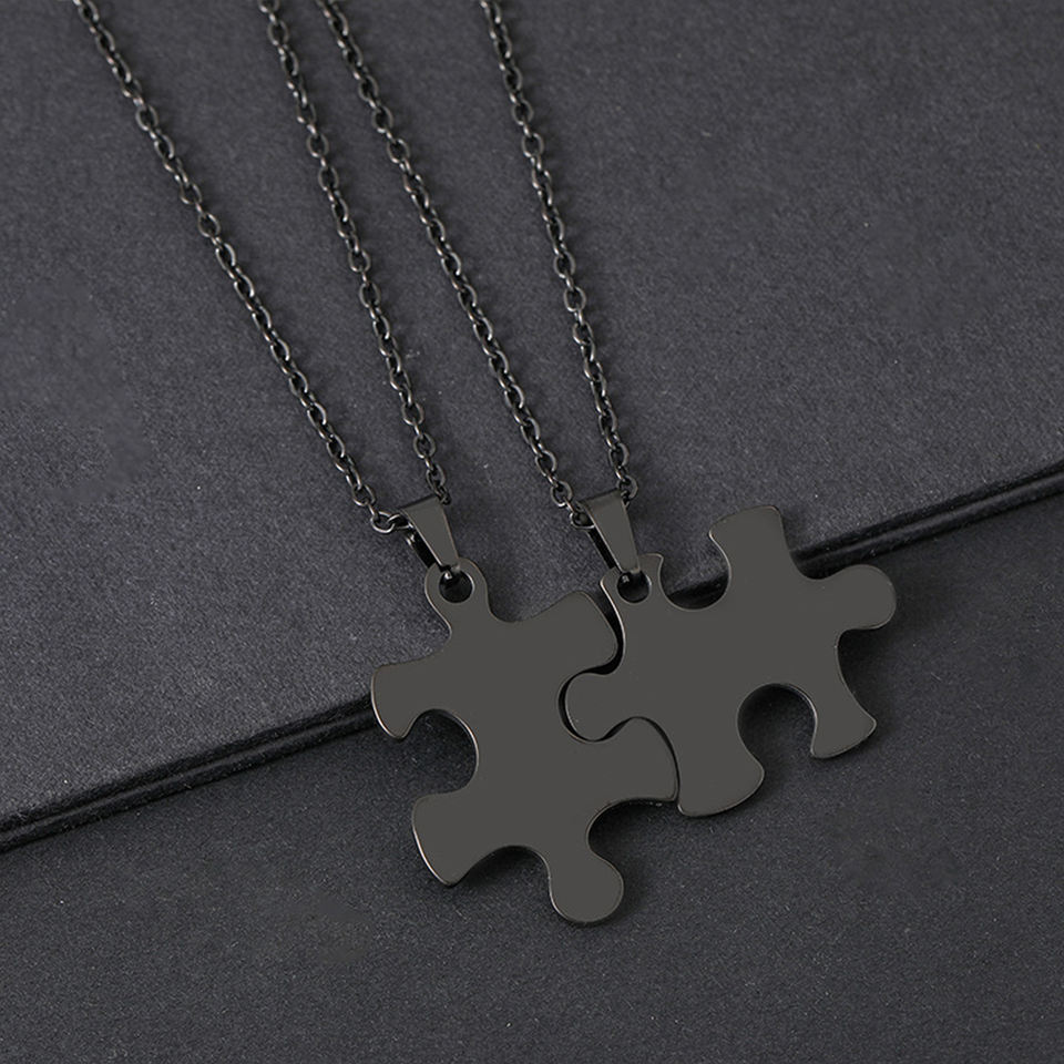 Collana in acciaio inossidabile stile coppia con pendente puzzle 35×47 mm, personalizzabile con nome, 18,5 g, argento/nero/oro/oro rosa