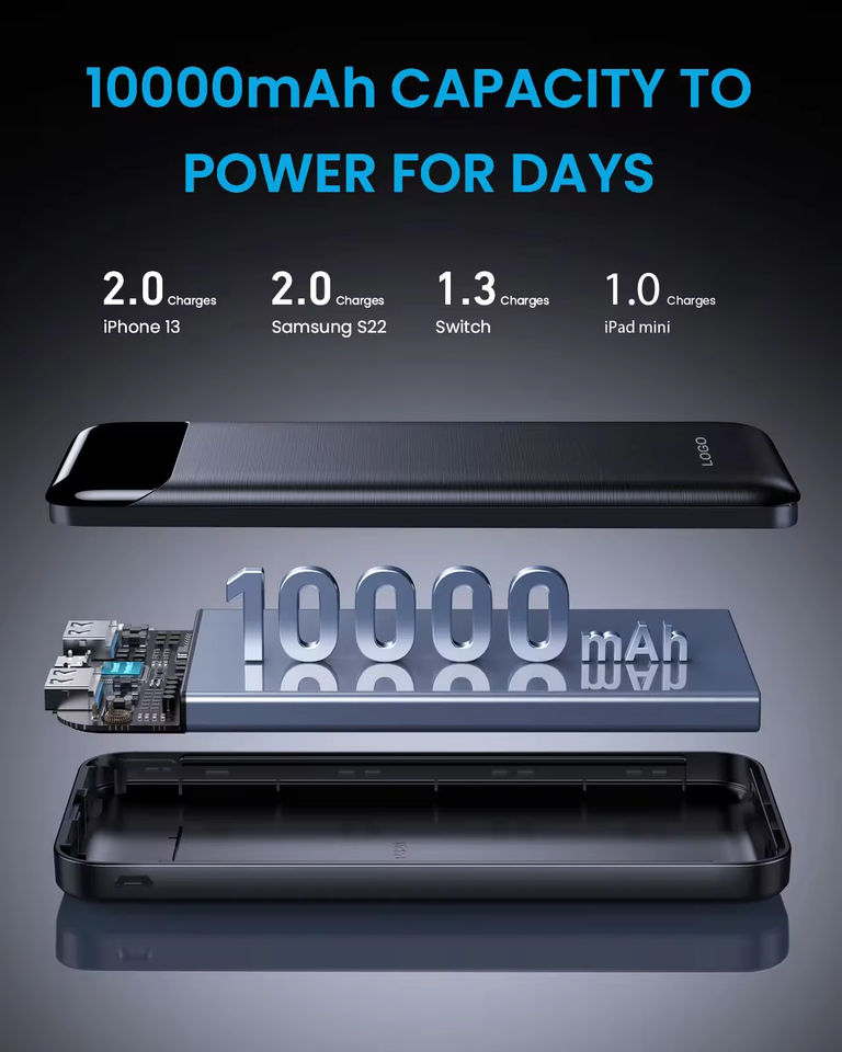 Power Bank Portatile Personalizzabile con Logo, 10000mAh di Grande Capacità, Display LED, Elettronica di Consumo di Tendenza 2026 a Basso Prezzo