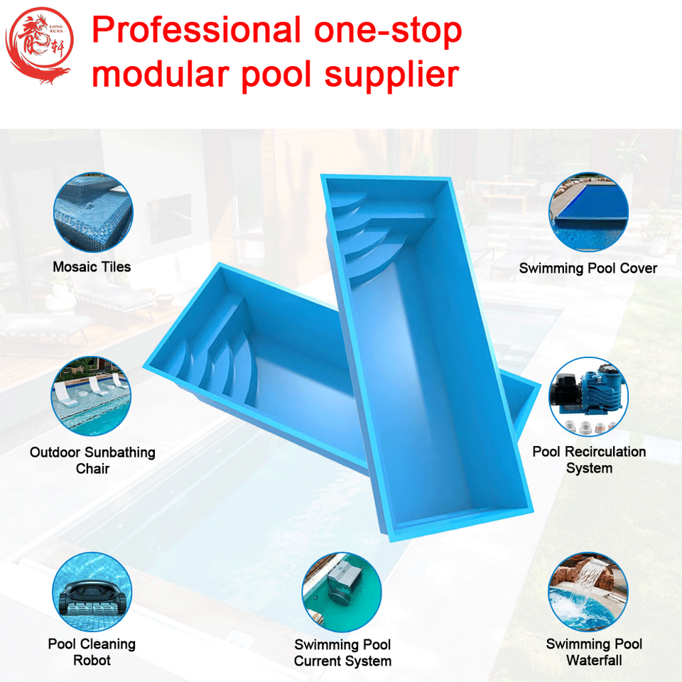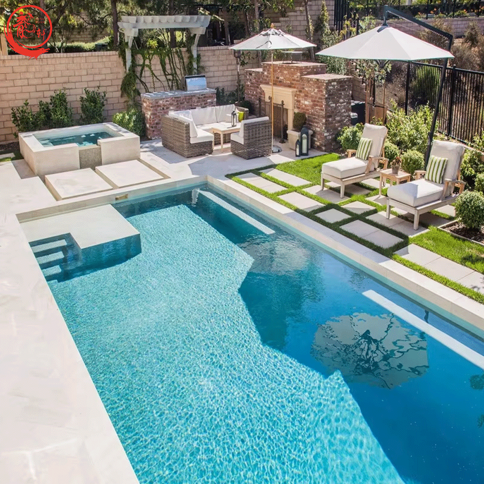 Piscina a Basso Prezzo in Vetroresina per Nuoto Controcorrente con Terrazza Idromassaggio Riscaldata da Competizione Personalizzata con Ingresso a Spiaggia Resistente ai Raggi UV