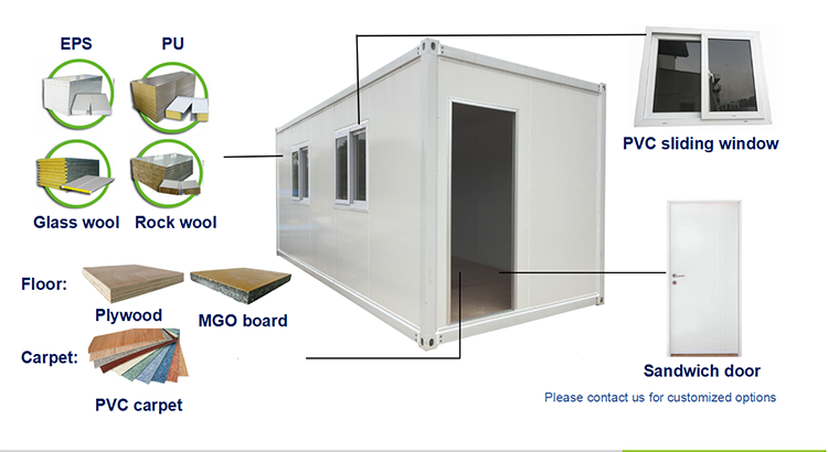 Dimensione Standard:5800*2400*2890mm o requisiti personalizzati