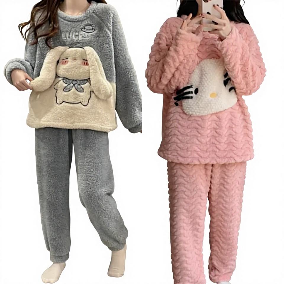 Low Price Wholesale Coral Fleece Pajamas; Women's Autumn and Winter Long-sleeved Coral Fleece Pants Two-piece Home Clothes