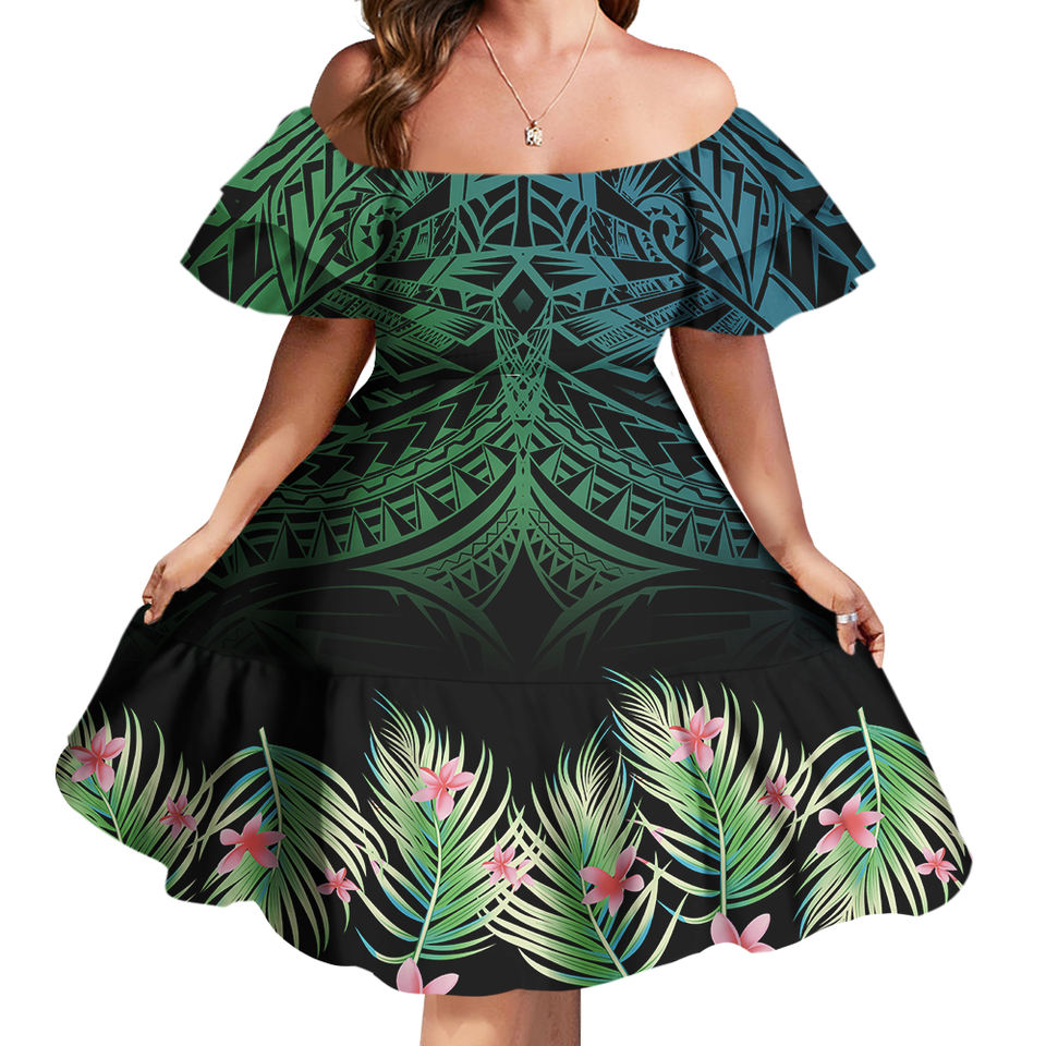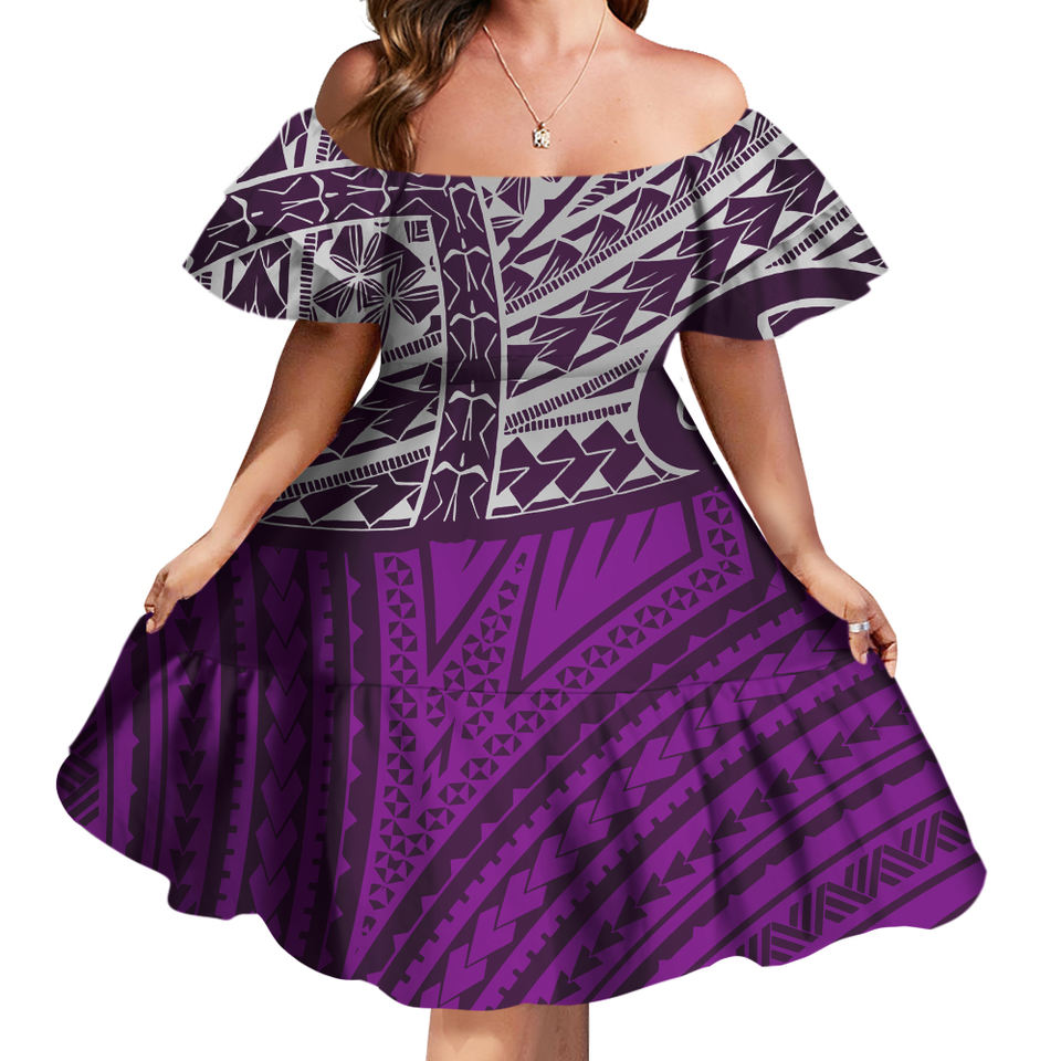 Low Price Wholesale Custom Doble Layer Ruffle Sleeve Party Dress Polynesian Hawaii Tribal Print Chiffon Big Size Tiered Dresses