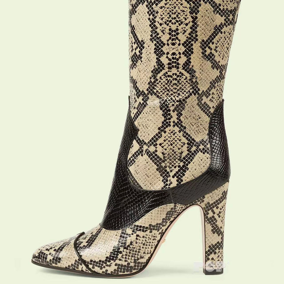 Lower MOQ Women Long Boots Vegan Leather Snake Print Women Knee High Pants Boots With Block Heel