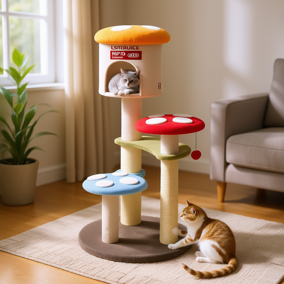 Lsitouce Albero per Gatti a Forma di Fungo, 4 Livelli, con Tiragraffi in Sisal e Piattaforme Imbottite, Giocattolo per Gatti da Interno
