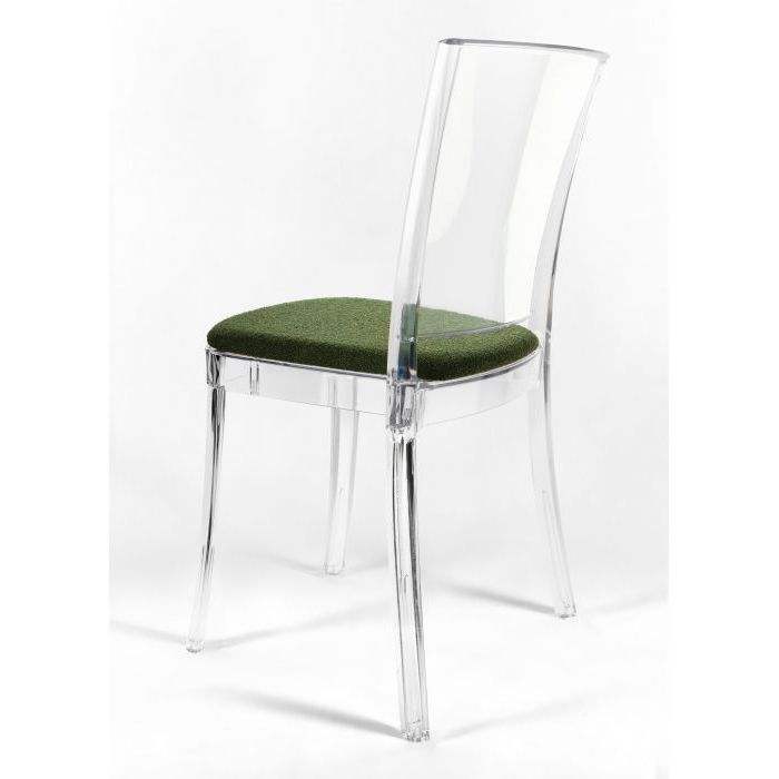 Sedia trasparente imbottita in tessuto Boucle verde Lucienne con cuscino per soggiorno modello 20 bcl2000